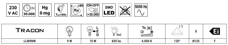 • Solarni sustavi i solarne elektraneUGRADBENI LED SVJETLEĆI MODUL 230 VAC, 9 W, 4000 K, 820 lm, EEI=F